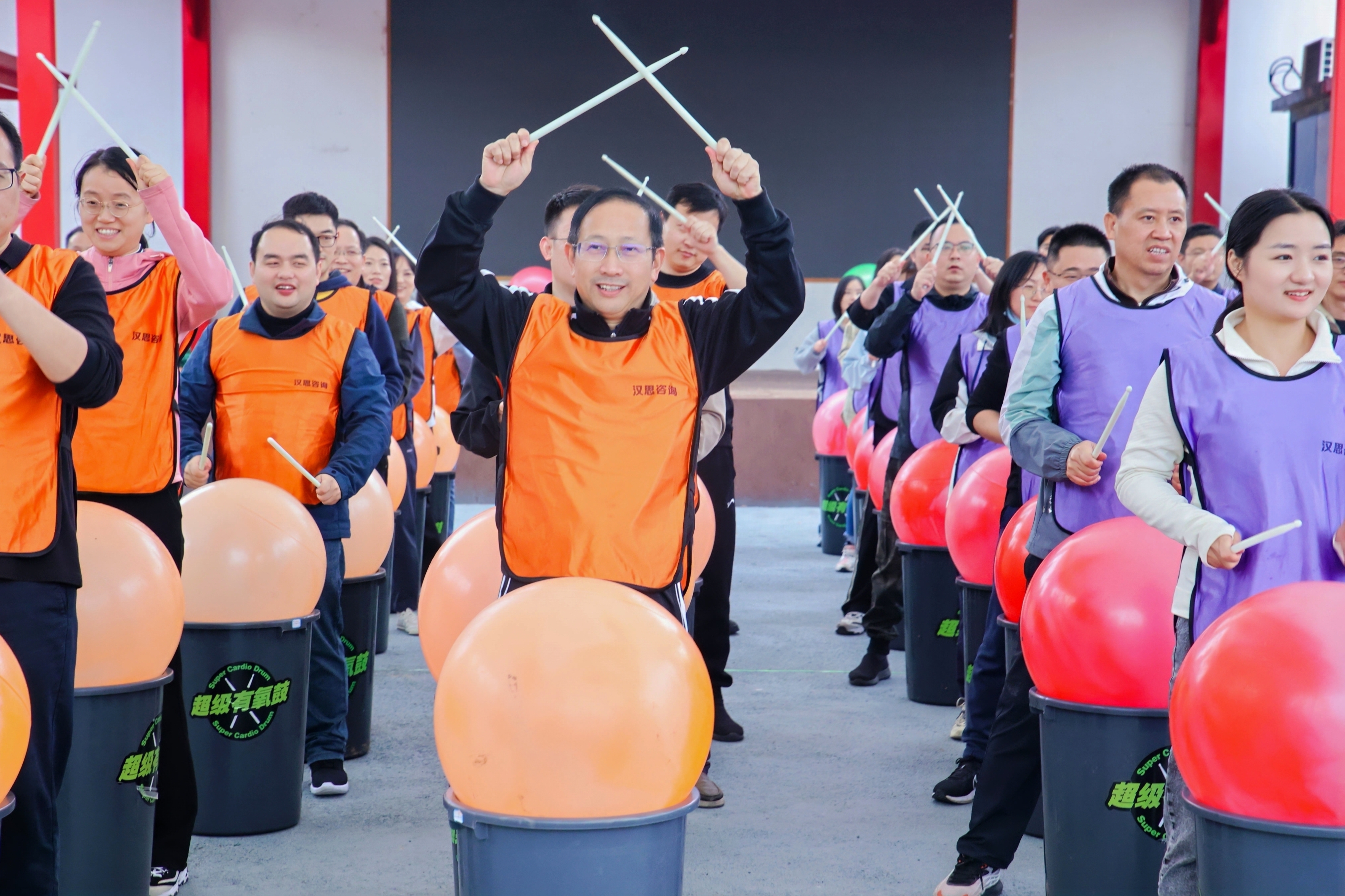 短暂休整后,下午的“超级有氧鼓”在动感欢快的音乐律动中,把每个人都带到了快乐的童年时光。各支队伍的编舞、展示更是让大家看到了不一样的自己和同事,身心都得到了放松。